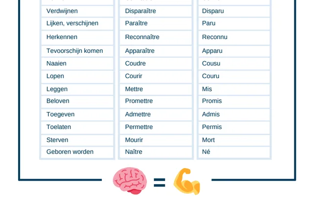 De belangrijkste vormen van de participe passé van onregelmatige werkwoorden