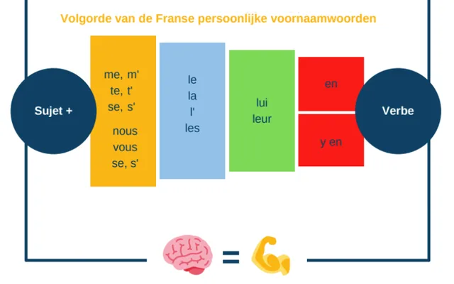 De correcte volgorde van de verschillende Franse persoonlijke voornaamwoorden