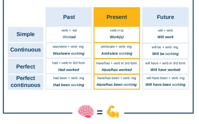 Een handig overzicht van de vorming van alle Engelse tenses.
